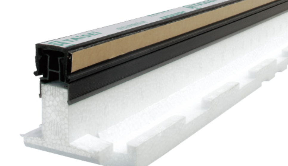 独立気泡型の発泡ポリプロピレン、ポリエチレン、ポリスチレン、ブチルゴム、合成ゴム(EPDM)、ステンレス、ガラス繊維、ポリ塩化ビニルの特質を理想的に組み合わせた成形伸縮目地材は、従来のエラスタイト系目地材を超える、画期的な目地材の傑作。