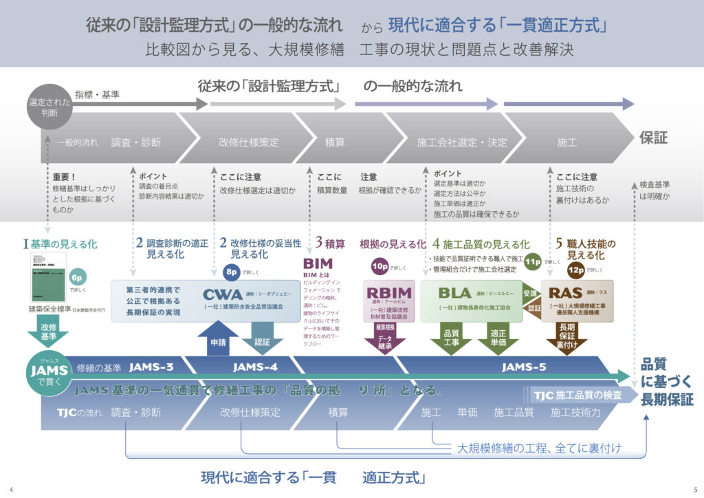 一般社団法人建物調査診断受託センター(TJC)は、マンション大規模修繕の新しい取り組み・15年保証を目指し、従来の「設計監理方式」と現代に適合する「一貫適正方式」マンション超寿命化モデルを追及します。